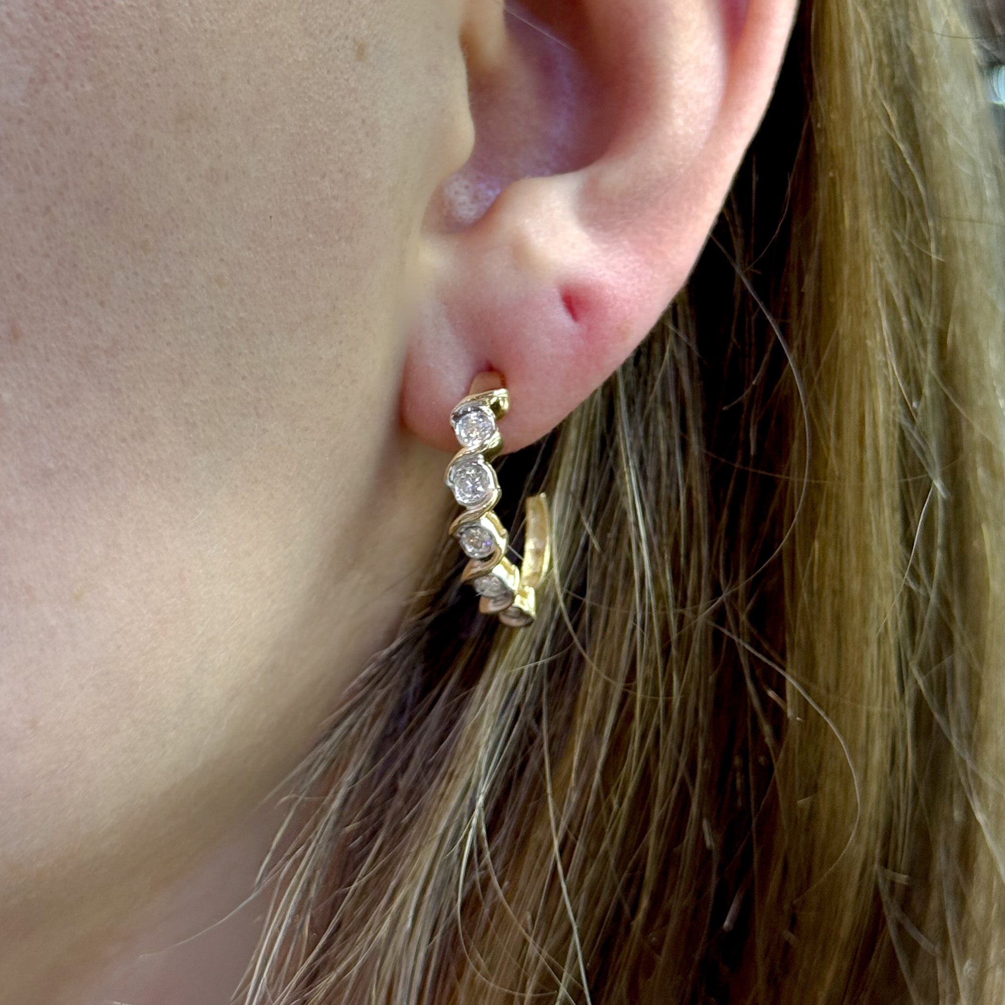 14K Two-Tone Gold Diamond Half Hoops 1/2 Carat Total Weight