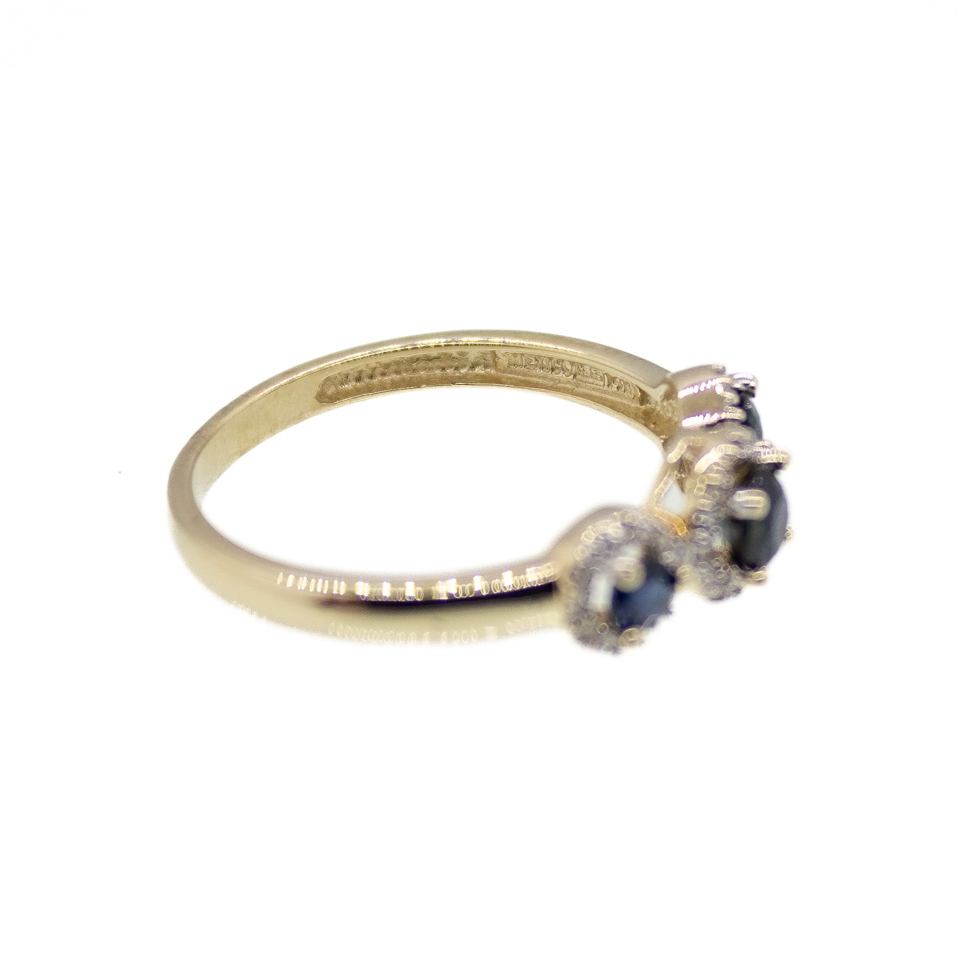 14K Three Stone Sapphire and Diamond Ring